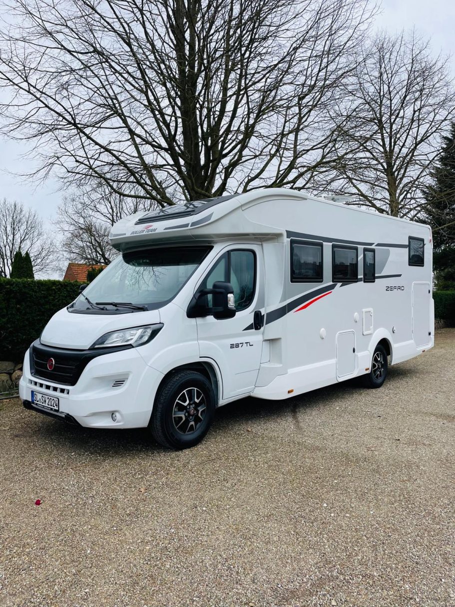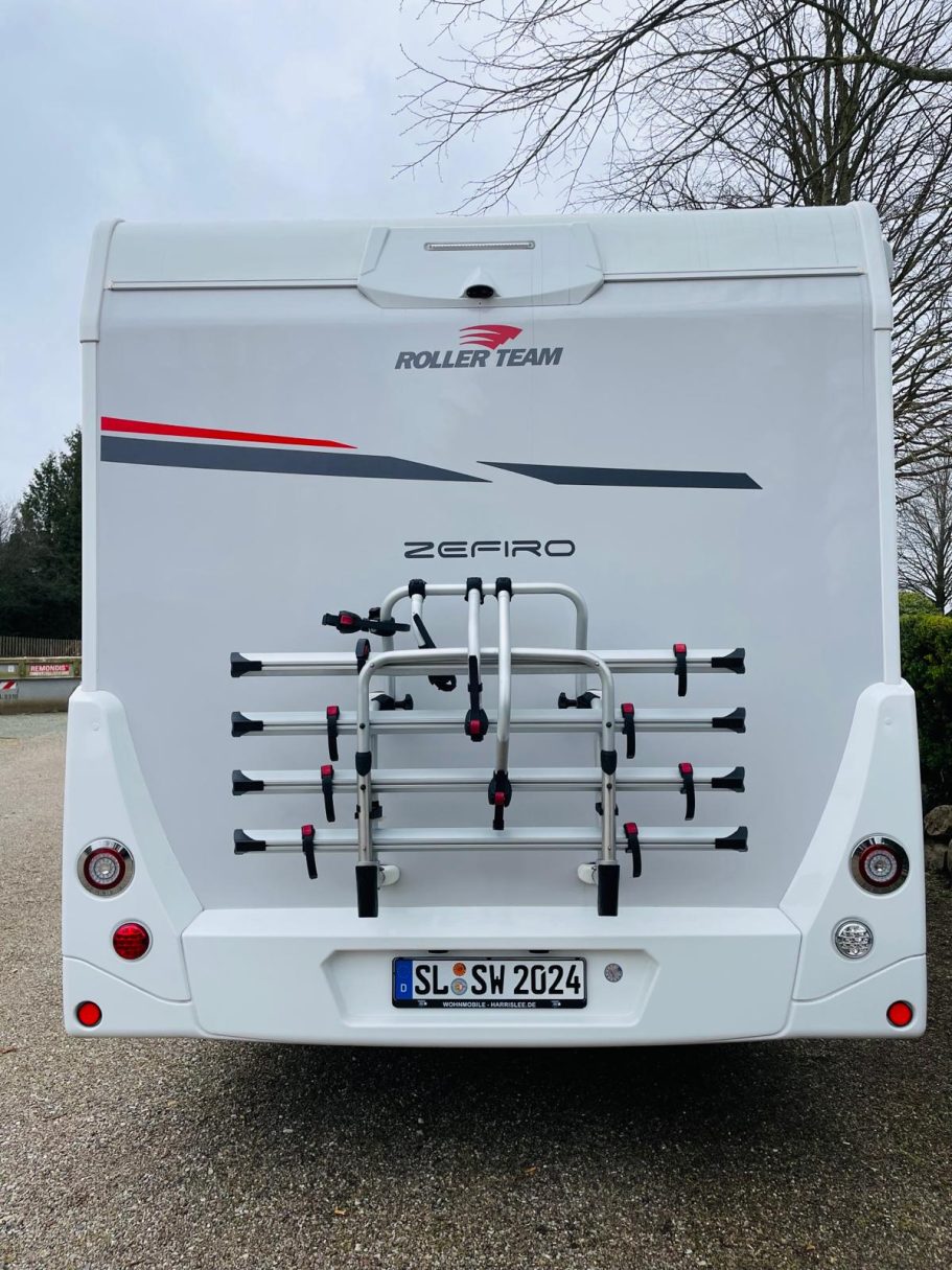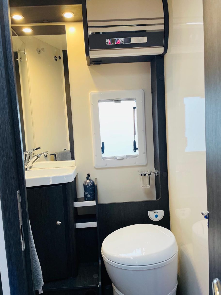 Unser teilintegriertes Schlafwerk 2.0 bietet durch das große Dachfenster ein beeindruckendes Raumgefühl. Es stehen insgesamt 4 Schlafplätze (Zwei Betten im Heck je 80x200 und ein Hubbett 128(107)x190) mit Absturzsicherung zur Verfügung.