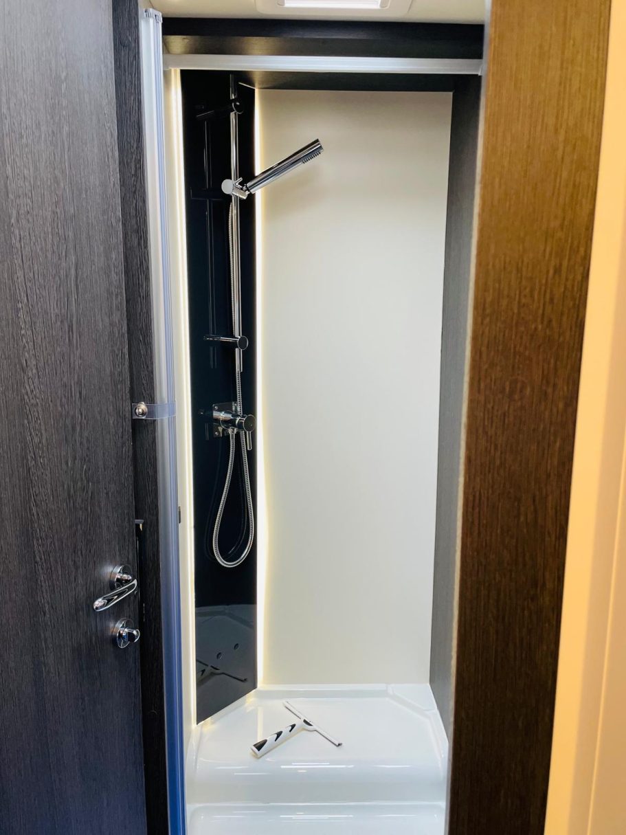 Für den spontanen Halt am See oder einer Nacht im Wald steht eine Aufbaubatterie und eine Solaranlage zur Verfügung, durch welche das Schlafwerk auch ohne Landstrom seinen kompletten Komfort zur Verfügung stellen kann.